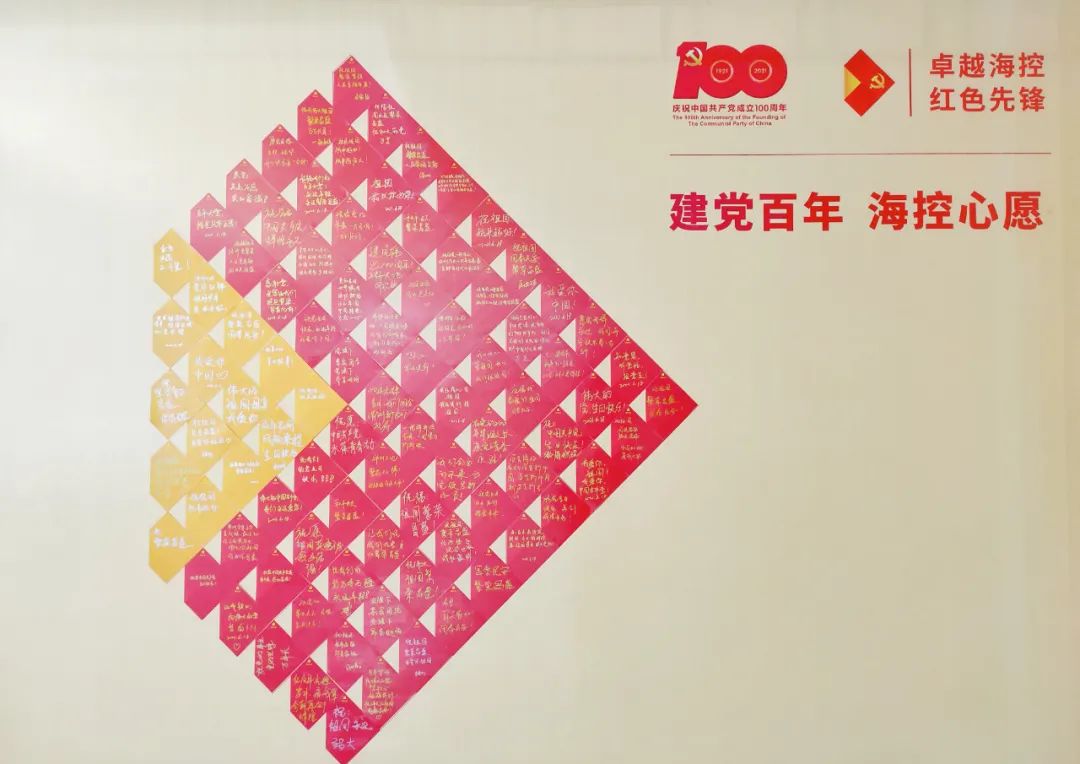 活動期間,在印有中國共產(chǎn)黨成立100周年慶祝活動標(biāo)識和“卓越海控,紅色先鋒”黨建品牌的許愿墻前面,黨員干部職工紛紛領(lǐng)取特制的海控許愿卡,認(rèn)真寫下自己的祝福語,并鄭重地張貼在許愿墻上,“感謝黨,是您讓我們挺起脊梁,昂首向前”、“祝祖國國泰民安,繁榮昌盛”......所有的心愿卡共同匯聚成巨大的紅色海控集團(tuán)標(biāo)識,表達(dá)了海控集團(tuán)及全體黨員干部職工對黨和祖國的美好祝愿。
